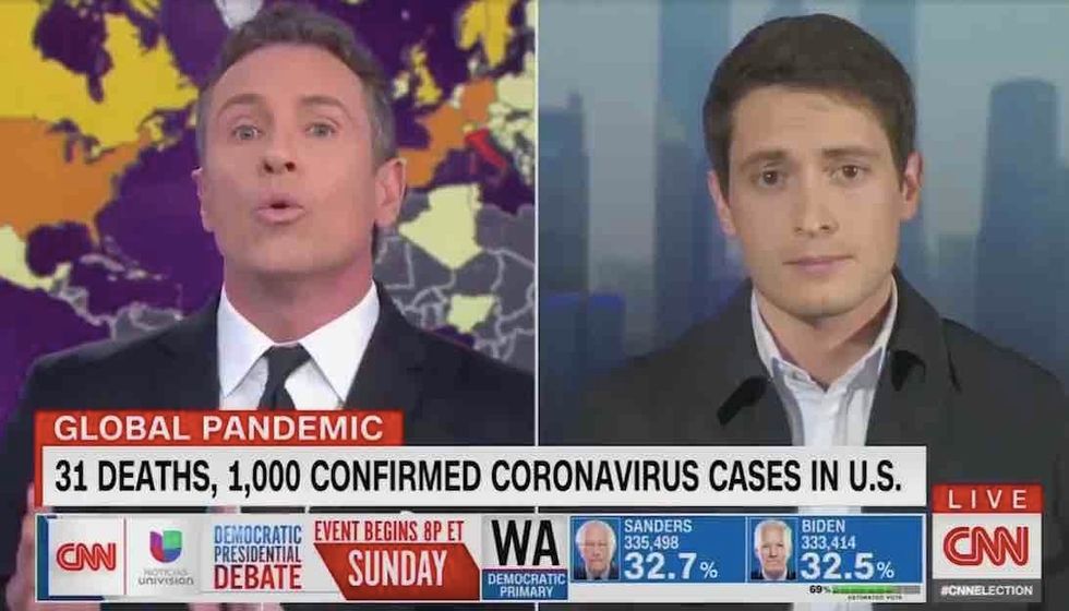 One of the funnier segments featured a CNN panelist mocking Trump's European travel ban to prevent "the outside invasion of the disease" and then Cuomo's buddy Don Lemon responding with "the Chinese coronavirus, that they've been calling it" — as if it's a phrase he's never heard before.