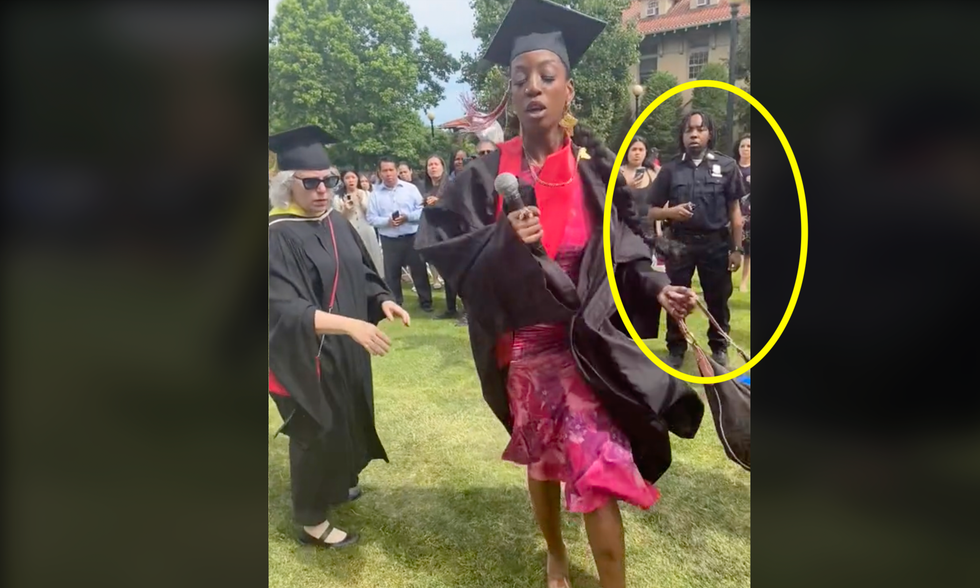 The graduate soon gains control of the microphone. A security guard just feet away didn't intervene: