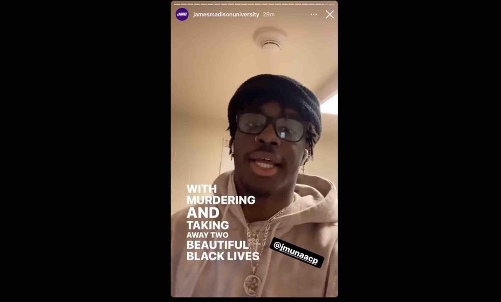 James Madison University on its official Instagram account shared a video featuring a student not only decrying the verdict in the Kyle Rittenhouse case but also accusing Rittenhouse of "murdering ... two beautiful black lives."