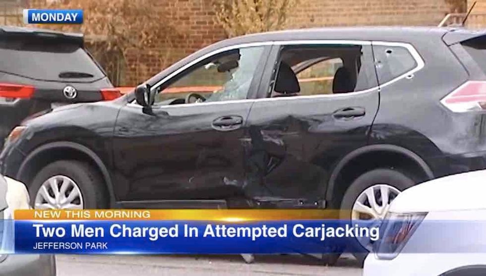 Two men allegedly targeted a Chicago woman's SUV not once, but twice Monday morning, WLS-TV reported — and the wild escapade ended with the victim's concealed-carrying fiancé opening fire at the alleged carjackers, who took off running and were later arrested.