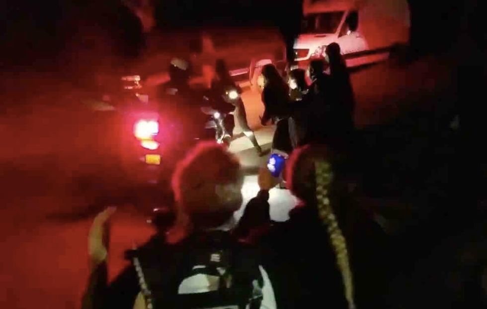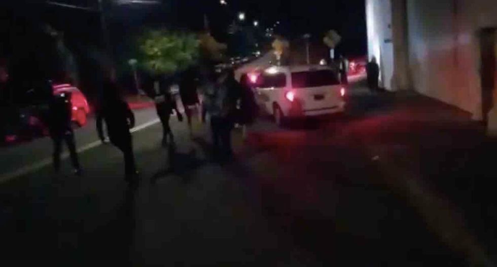 Video shows protesters converging upon the scene and the white van escaping and speeding off, after which protesters cheered and applauded.