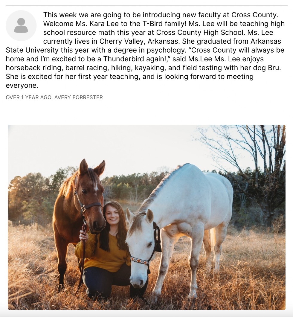 “Cross County will always be home, and I’m excited to be a Thunderbird again!” Lee is quoted as remarking in the news entry.