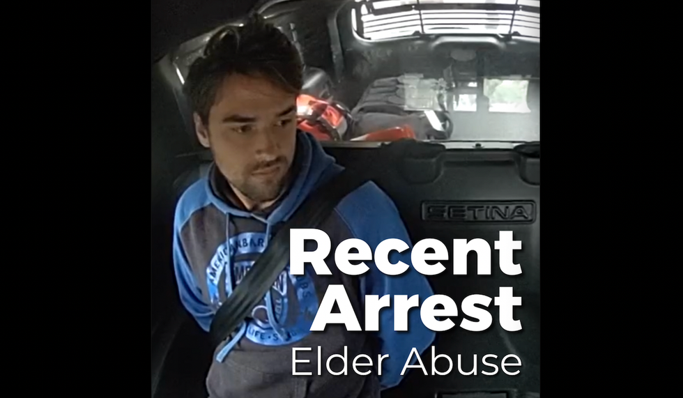 The suspect was booked on two counts of elder abuse — and for battery on an officer, after police said he kicked an officer while being booked.