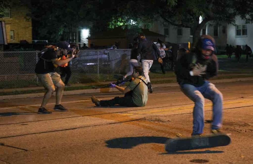 The criminal complaint adds that "Grosskreutz then runs southbound away from the defendant screaming for a medic and the defendant gets up and starts walking northbound. The defendant turns around facing southbound while walking backwards northbound with his firearm in a ready position, pointed towards the people in the roadway."