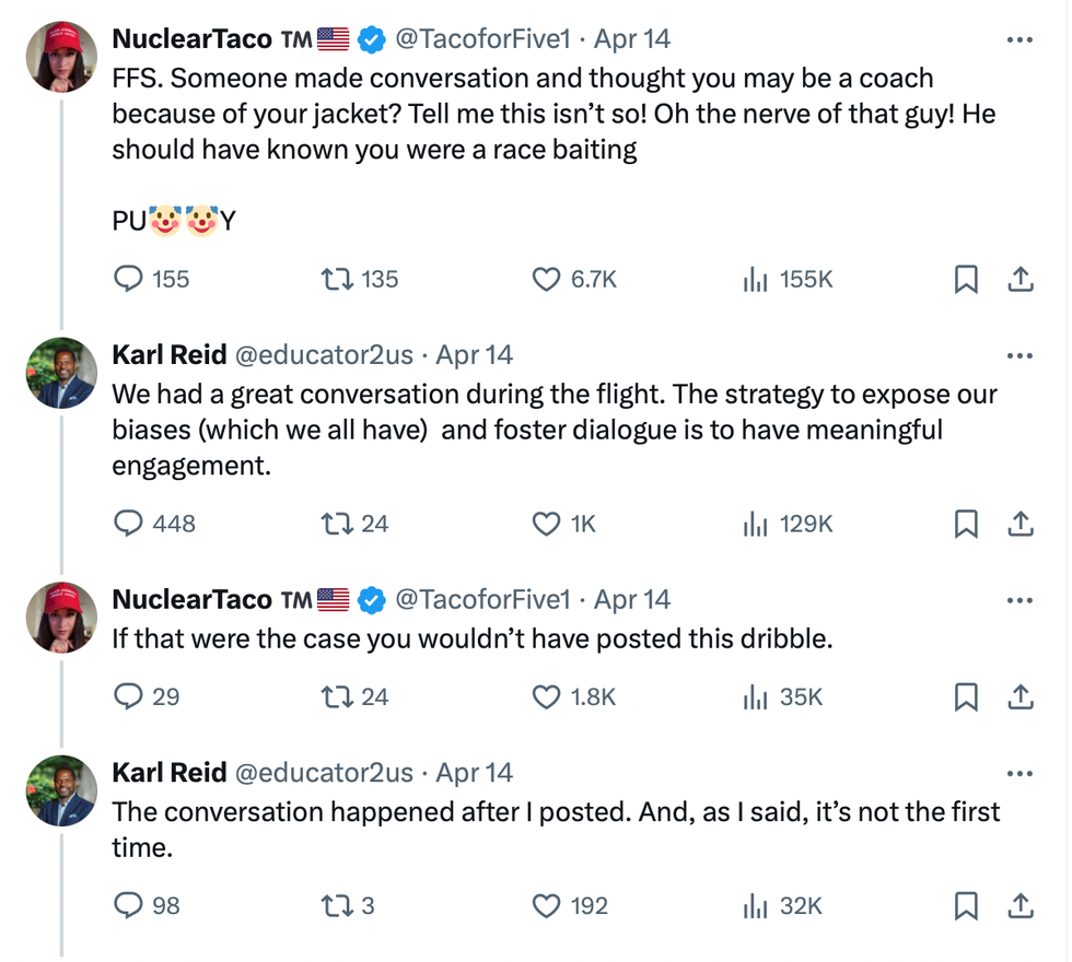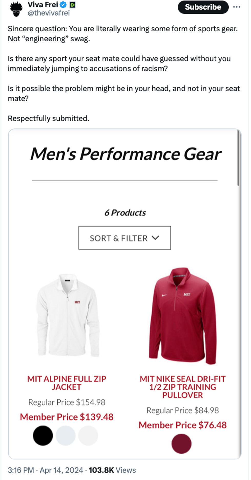 "Just boarded an early morning flight wearing my @MIT gear. A seat mate looked at me and asked, 'Basketball?' I said, 'No. Engineering!' What about me prompted him to think I was playing or coaching basketball?" Reid asked in his post, which was accompanied by a what appears to be a selfie aboard the plane.