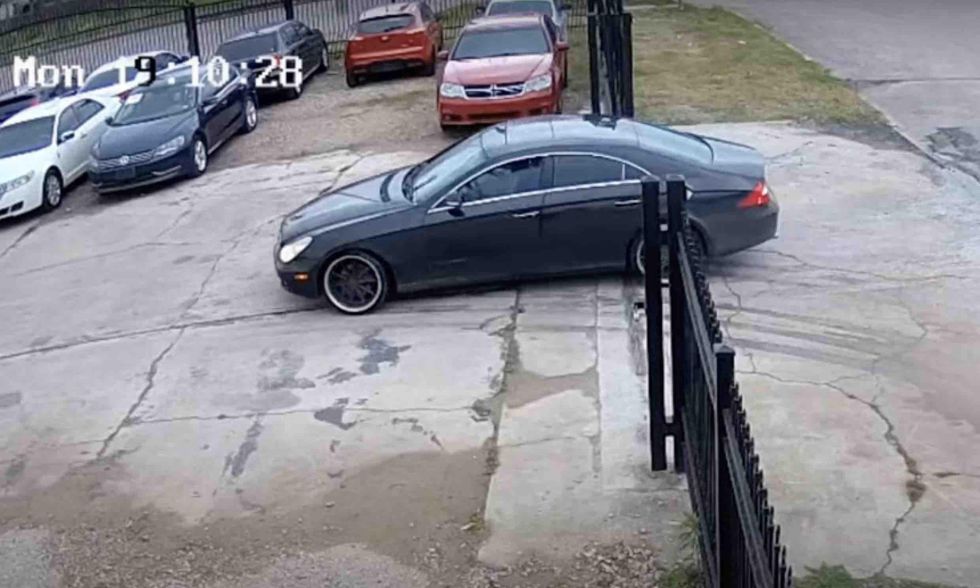 Surveillance video from the Houston Police Department shows two unknown men arriving in the parking lot of a used car dealership in the 7300 block of Gulf Freeway around 5:15 p.m. March 21.