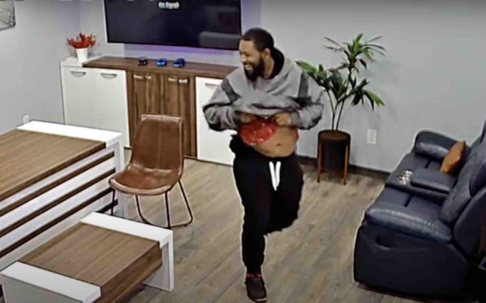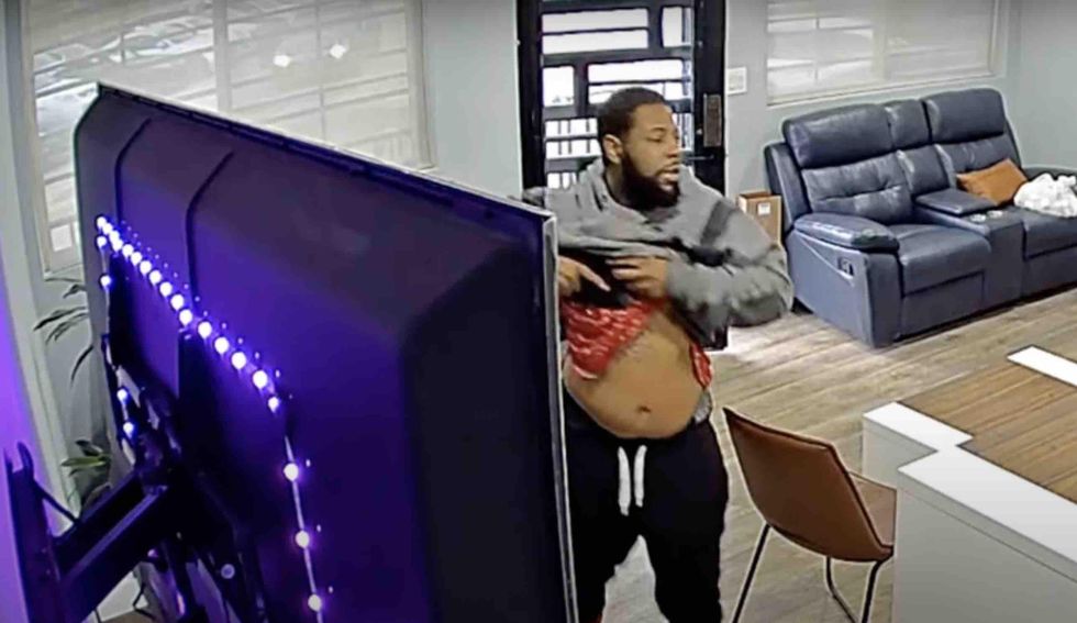 Video shows the suspect pulling up his hoodie and shirt to chest level and grabbing a gun, apparently in full view of the employee.
