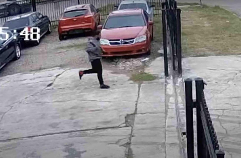 Indeed video shows the suspect smiling, turning around, and running through the parking lot and across the street.