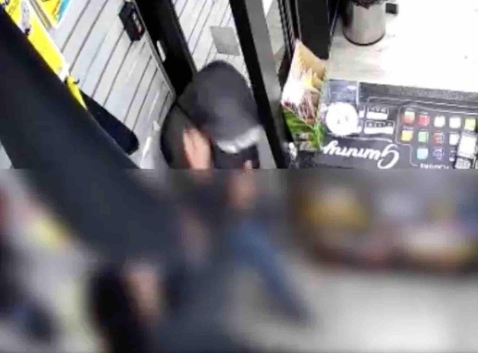 The suspect then lunged forward with his left hand and appeared to try to grab the clerk.