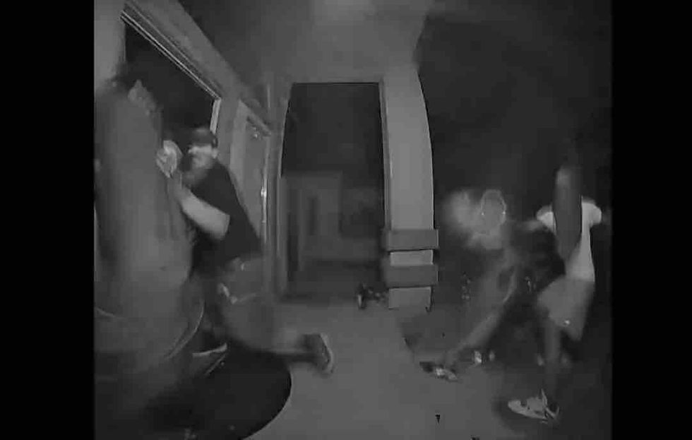 Suddenly one of the crooks kicked in the front door, and the first two fellas began to breach the entrance, according to surveillance video of the incident.