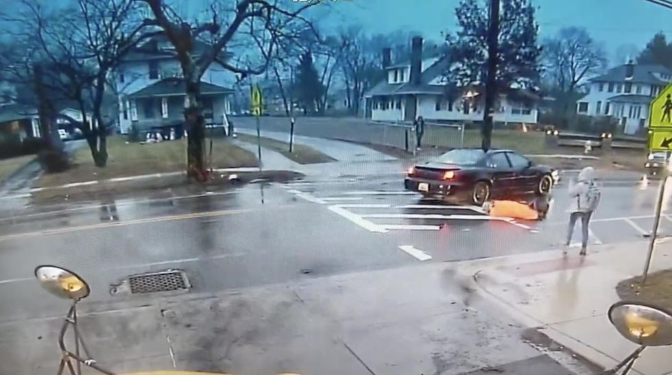 In the surveillance video clip of the incident, Cpl. Annette Goodyear of the North East Police Department was seen raising her hand to stop traffic as a North East Middle School student approached the crosswalk, WJZ-TV reported.