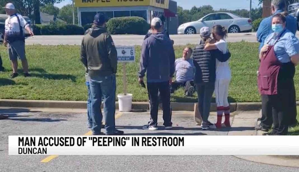Police identified the suspect as 53-year-old registered sex offender Douglas Lane of Charlotte, North Carolina, WSPA reported. Lane's phone was found on the restroom floor and was taken by police, the station said.