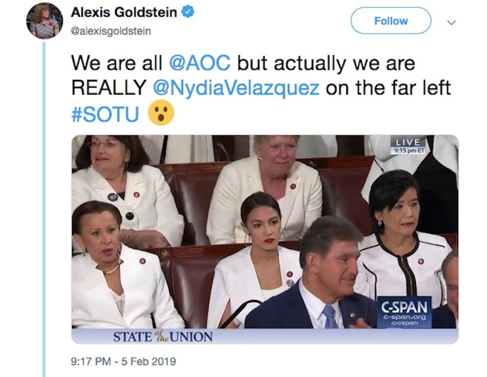 Here's a shot of Velasquez sitting to Ocasio-Cortez's right during the SOTU: