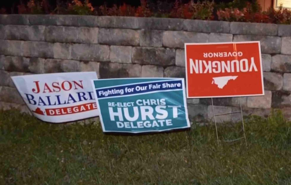 Police photos show campaign signs for Republican candidates such as Governor-elect Glenn Youngkin and Hurst's opponent, Delegate-elect Ballard, flipped over and on the ground, the station said.