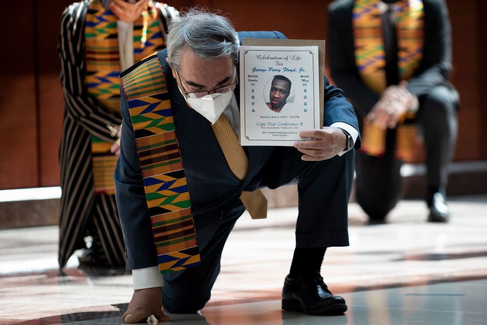 House Speaker Nancy Pelosi (D-Calif.) and other top Democratic leaders marched into the U.S. Capitol Visitor's Center last week and knelt for eight minutes and 46 seconds, the same amount of time that fired Minneapolis cop Derek Chauvin kneeled on George Floyd's neck.