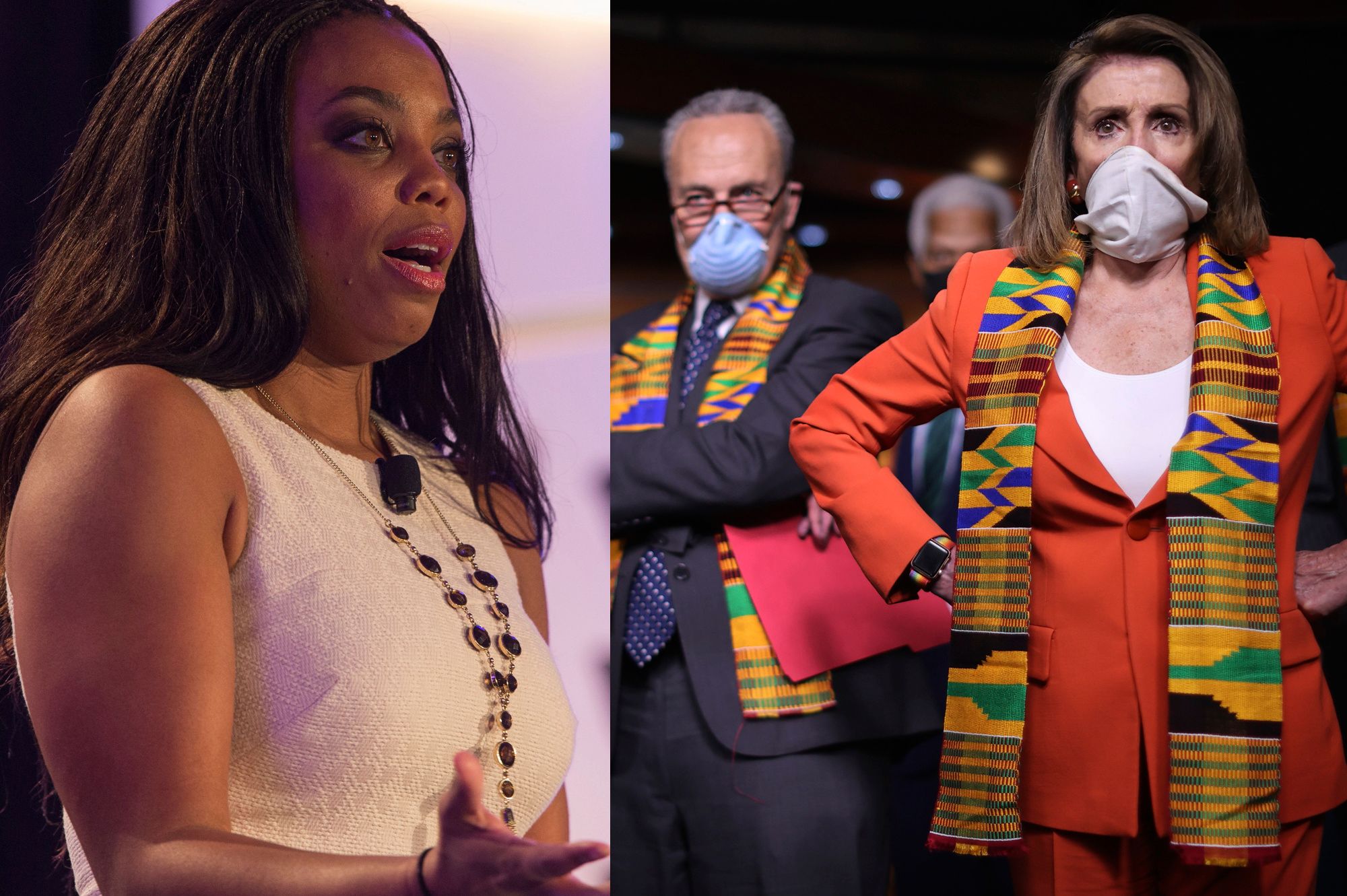 Former ESPN host Jemele Hill mocked Democrats for donning a traditional African kente scarf and kneeling to show support for the Black Lives Matter movement during the outrage over the death of George Floyd.