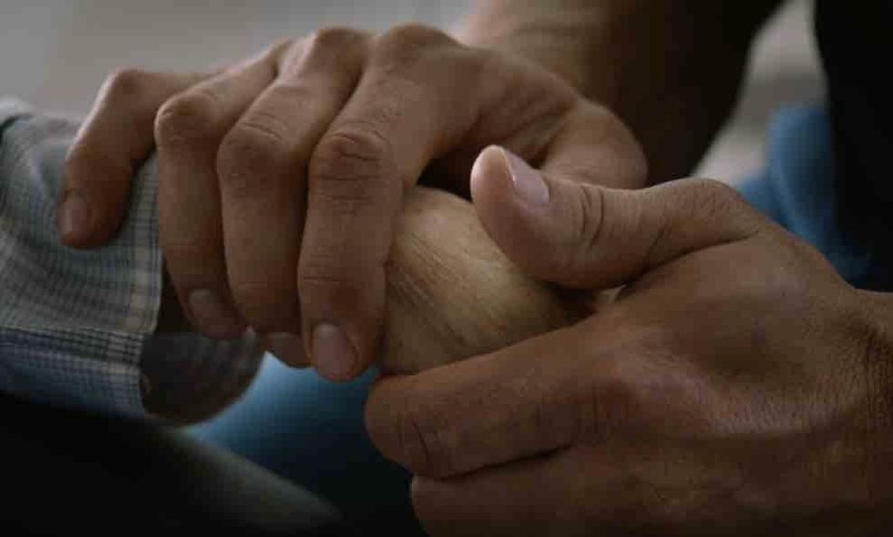 A female judge, pigeonholed as "too soft," sits between her male colleagues and brings down a gavel, and a male nurse, pegged as "too hard," is seen holding an older patient's hand.