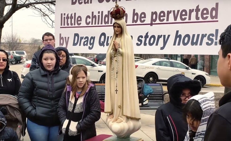 Rex Teodosio wrote for the American Society for the Defense of Tradition, Family and Property that his group was "peacefully praying the rosary" Feb. 23 outside the Indy Reads Books store in protest of its Drag Queen Story Hour, in which men dressed in drag read books to young children and their parents.