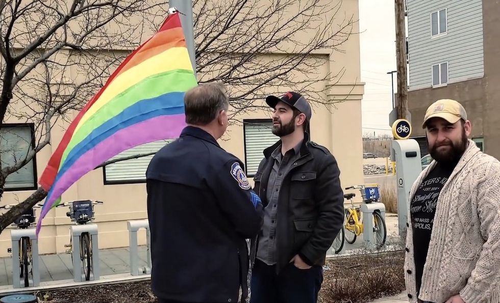 "We were heckled by a few advocates of the LGBT community right from the start," Teodosio wrote. "Ironically, the first counterprotester accused us of being intolerant and warping children."