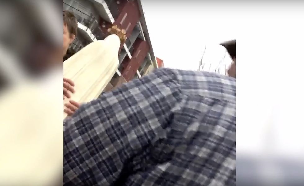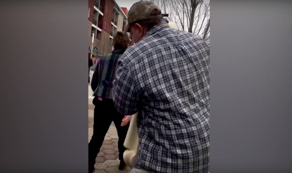 Soon a woman tried to grab a Virgin Mary statue from the protest area, lifting it up and then apparently throwing it to the ground as one protester tried to stop her — all of which was caught on video.