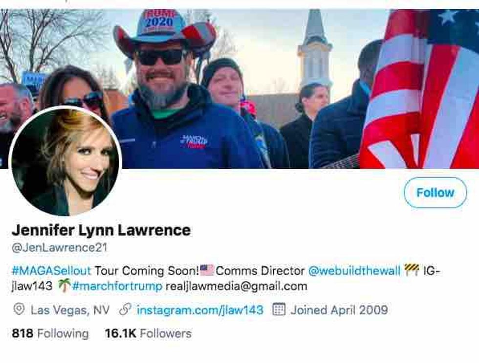 Jennifer Lynn Lawrence — whom JustTheNews characterized as a Christian conservative activist and former Breitbart writer — told the outlet she's not a verified Twitter user, a status denoted by a blue check mark next to the user's name: