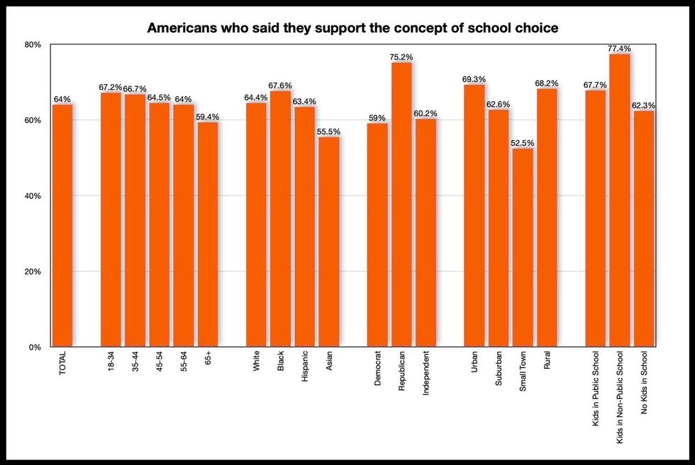 The data revealed that 64% of Americans say they support the concept of school choice.