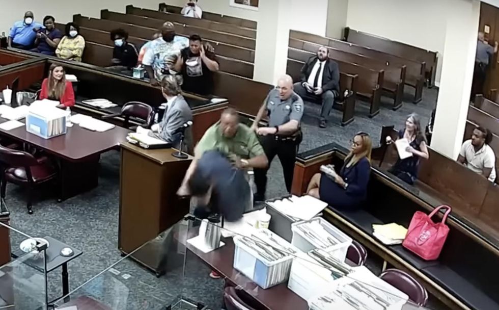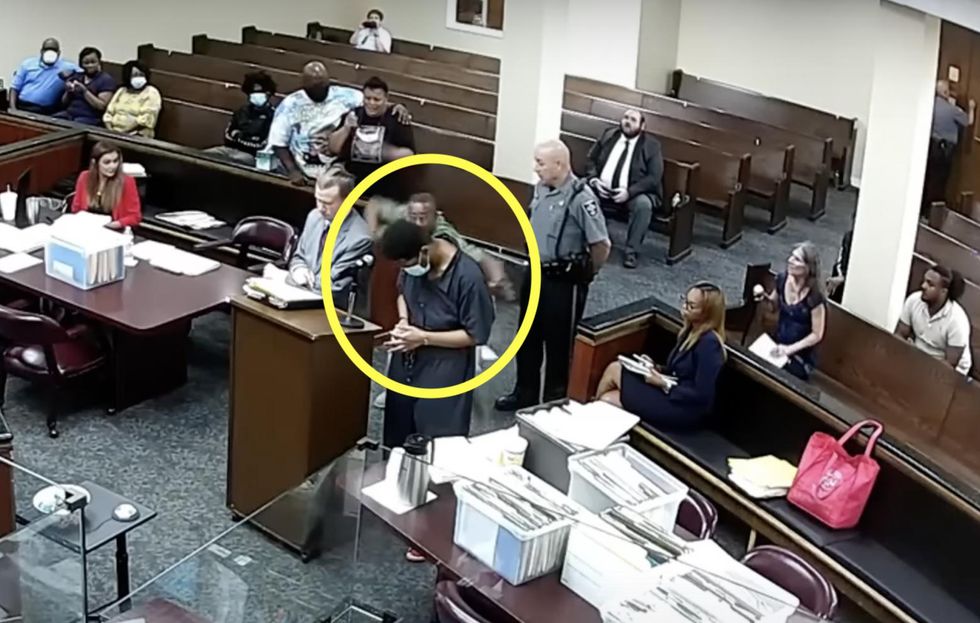 Video caught the moment a father ran up to his son's killer in a South Carolina courtroom earlier this month and and attacked him, swinging at his head and sending him to the floor.