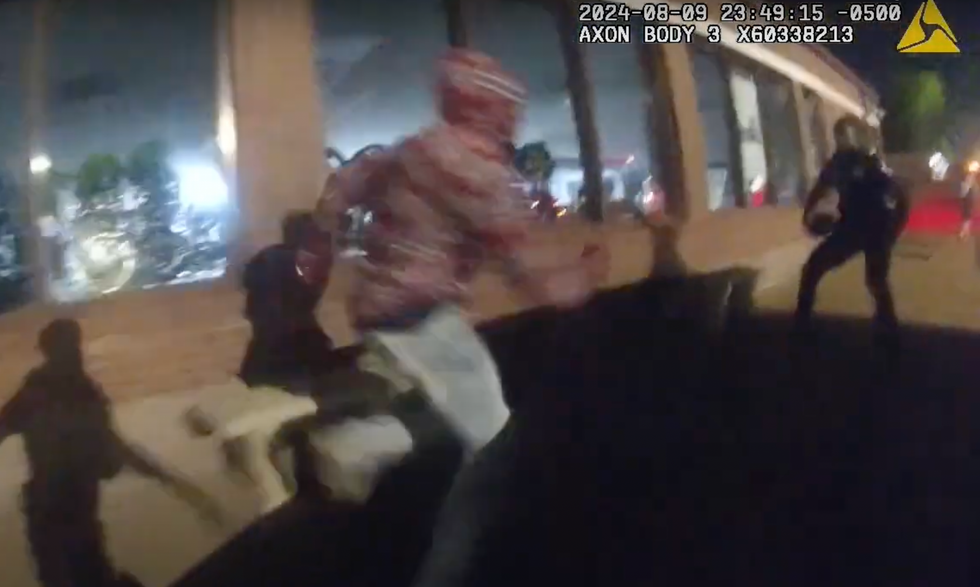 “If you look at the video, [Officer Brown] is standing up, waiting to catch this guy,” Doyle said, according to the station; he added that the suspect "tackled my guy like he’s a football player.”