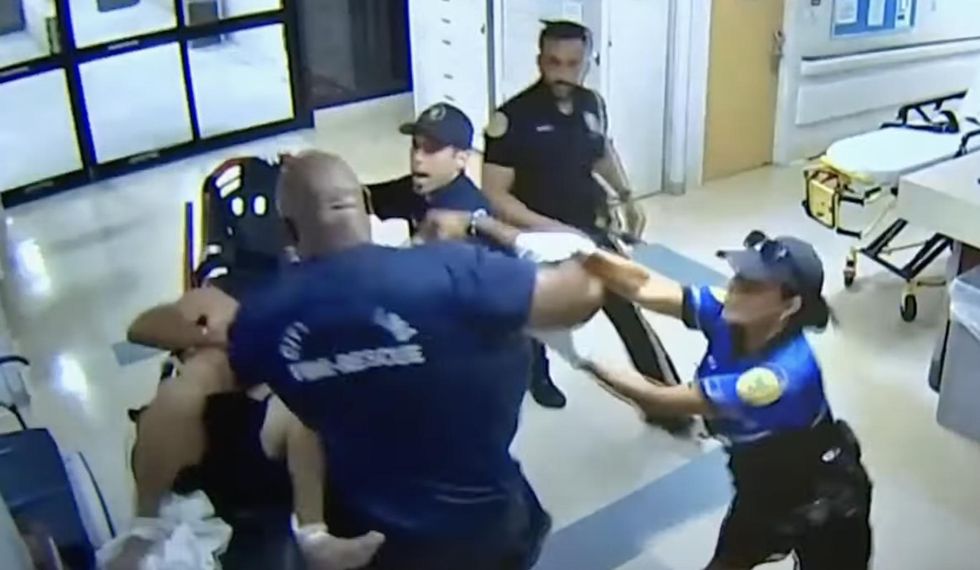 Video shows the patient — identified in a police report as Antonio Cruz — brought on a stretcher to the Jackson Memorial Hospital emergency room after consuming cocaine and heroin, the station said.