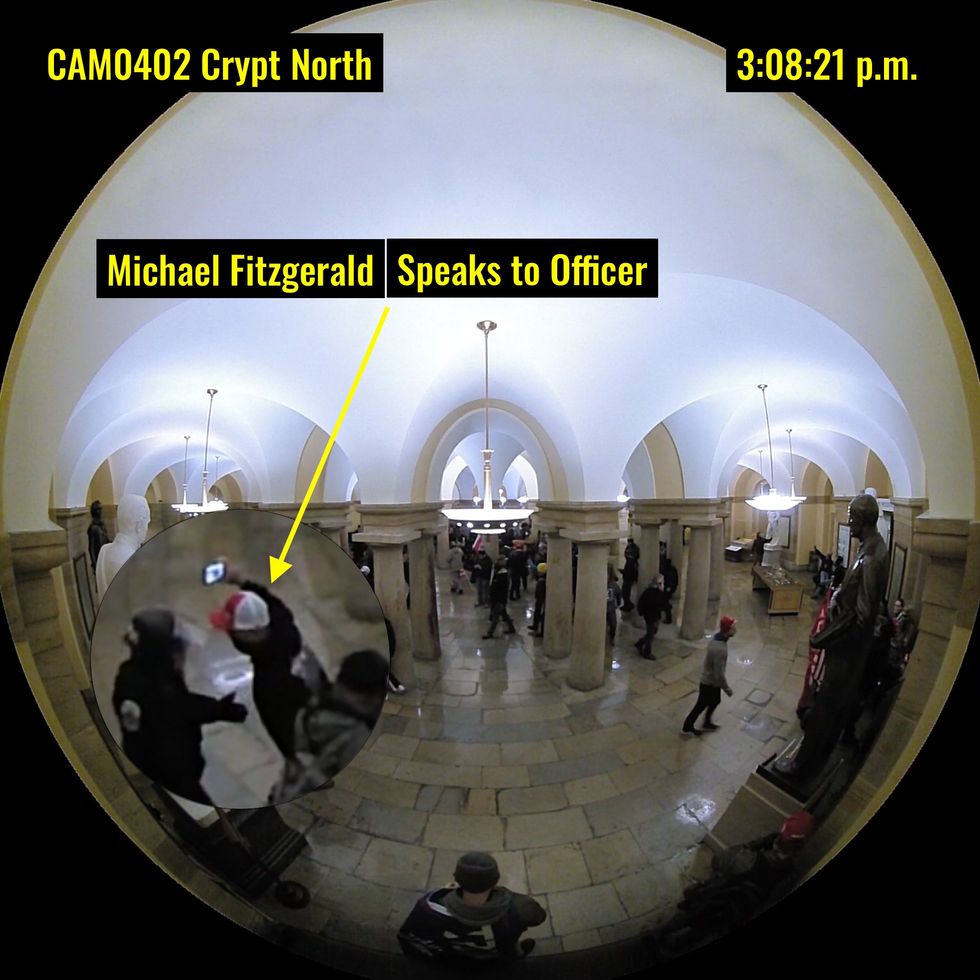 Fitzgerald entered the Capitol at 2:47 p.m., 35 minutes after the building was breached by the first rioters at the Senate Wing Door. He did nothing violent yet would be charged with violent entry and five other crimes.