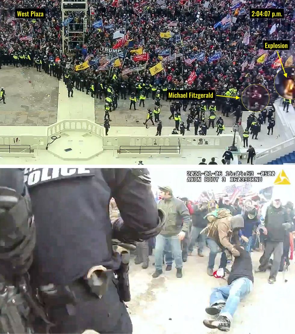 Capitol Police security video, however, shows that Fitzgerald did none of those things. He was near the front of the crowd that pushed into the building, but he was filming the action and did not push against or strike anyone, video showed.