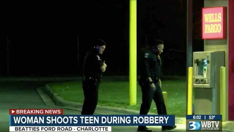 The woman told police a group of five individuals tried to rob her at gunpoint while she was in her vehicle at the ATM on Beatties Ford Road near Montana Drive, WBTV-TV reported.