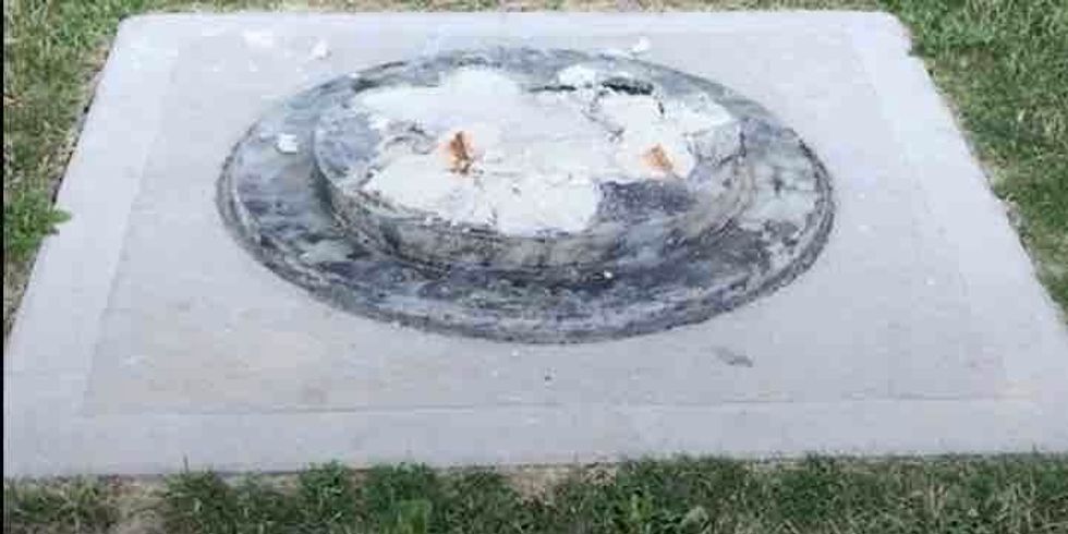 The Douglass statue in Maplewood Park was toppled from its base and left near the Genesee River Gorge, about 50 feet from its pedestal, police told the paper. The base and lower part of the statue were damaged, as was a finger on the statue's left hand, but police added to the paper that there were no signs of graffiti.