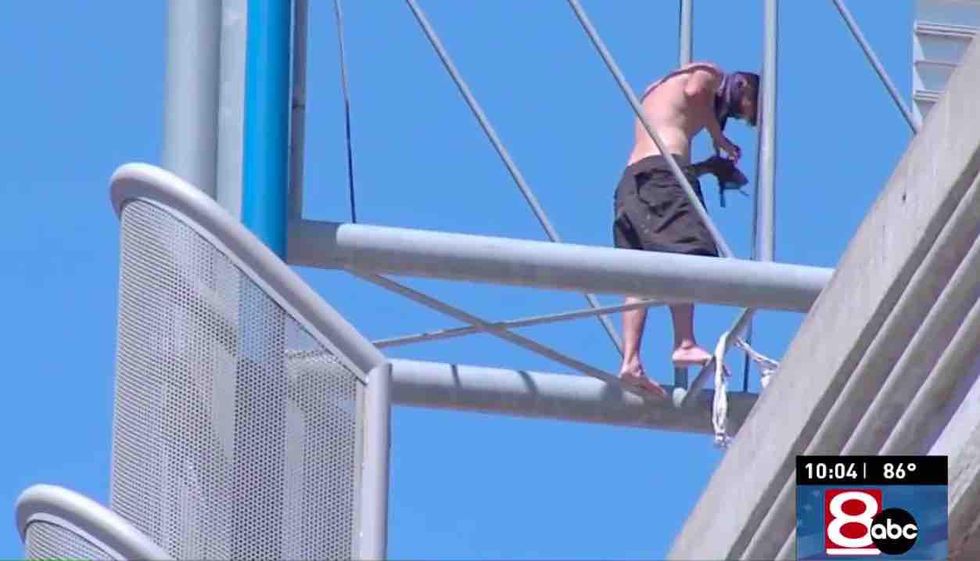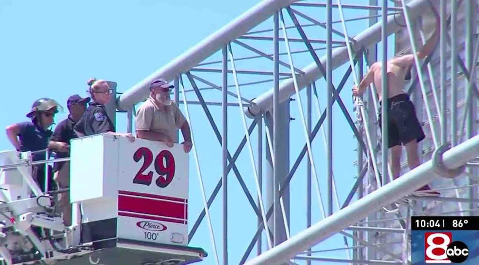 He said he yelled up to the man, "God loves you, guy!" — and that the man climbed down, KTUL reported.