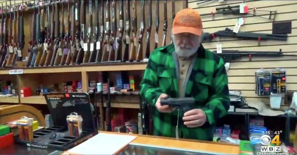 The defiant gun shop owner told WBZ that business is booming — and has been since the coronavirus started spreading several weeks ago.