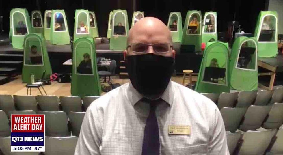 Wenatchee High School in Washington state came up with a novel way to allow band members to practice their instruments while remaining socially distant in the battle against COVID-19 — placing the students inside individual tents, KCPQ-TV reported.