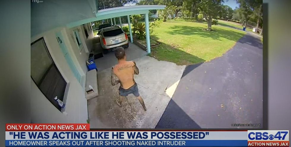 Another neighbor saw the intruder before he entered Kerr’s home, WJAX said — and that neighbor shared video with the station of the man walking up his dock, naked and muddy.