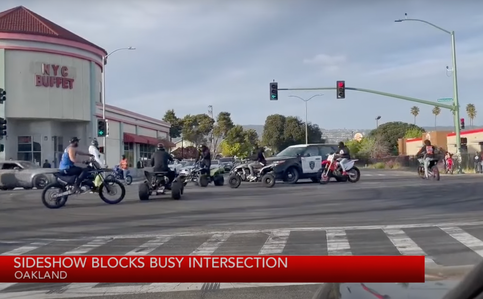 Oh, and an April 23 sideshow on the Bay Bridge brought traffic from Oakland to San Francisco to a standstill as about 100 motorcyclists popped wheelies and did donuts across all bridge lanes, KTVU said.