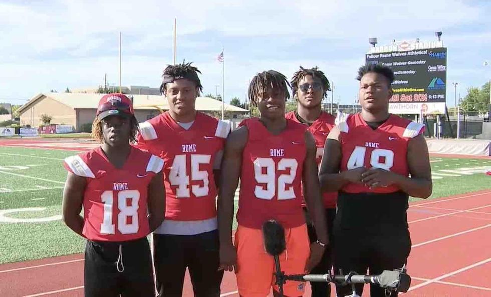 "She was shaking and still in panic," Goya added to his Facebook page. "But our RHS boys gave her comfort and were able to help her. The Rome High School football players really showed up today. They went above and beyond to help this lady without hesitation."