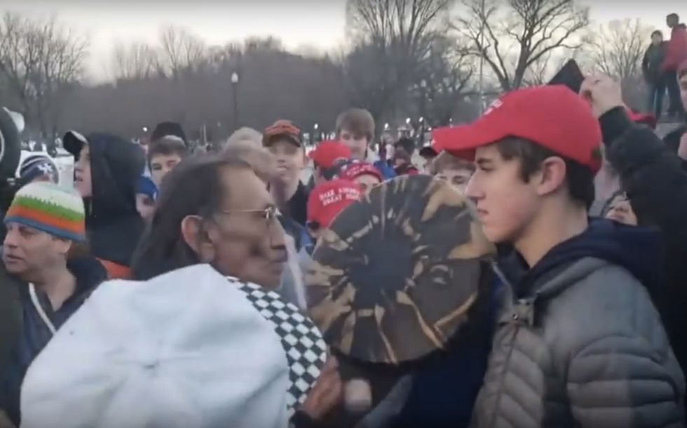 An initial video showing only the pair in a standoff — with a caption that read, "This MAGA loser gleefully bothering a Native American protester at the Indigenous Peoples March" — went viral as a result of a suspicious Twitter account that the social media platform suspended Monday, CNN Business reported. A tech expert added to CNN that a network of anonymous accounts worked to make that clip go viral.