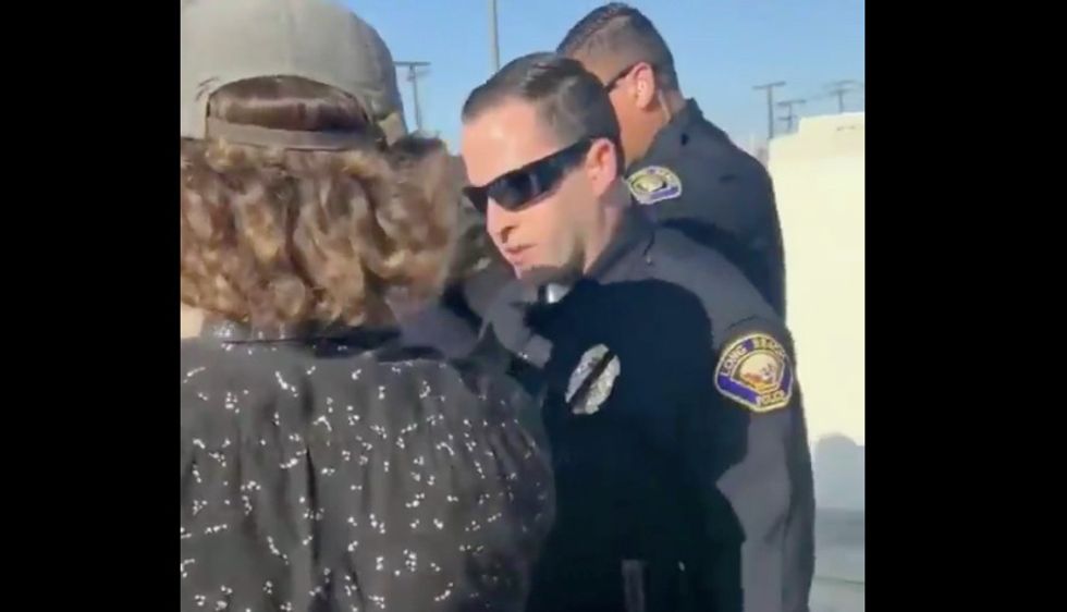 Soon police arrived on the scene. Video showed officers' shoulder patches reading "Long Beach Police."