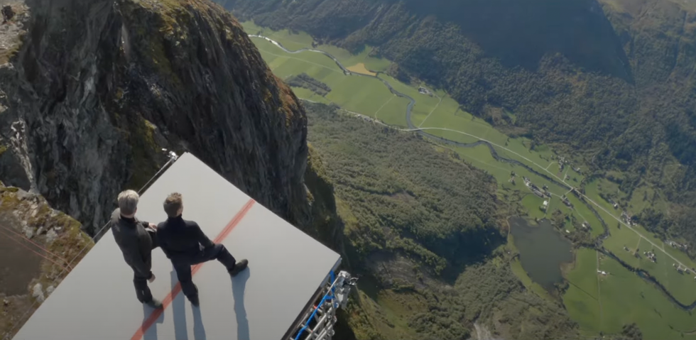 Then Cruise & co. headed to Norway and helicoptered everything to the cliff for the real thing, constructing the ramp over several months: