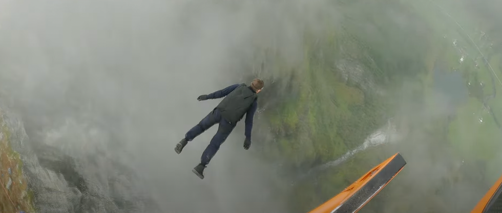 For "Mission: Impossible — Dead Reckoning Part One," which hits theaters next July, Cruise and his team worked up a stunt for the ages. His plan was to gun a motorcycle down an elevated ramp on the edge of a Norwegian cliff, head directly into skydive mode once he's airborne, and then parachute back to the ground.