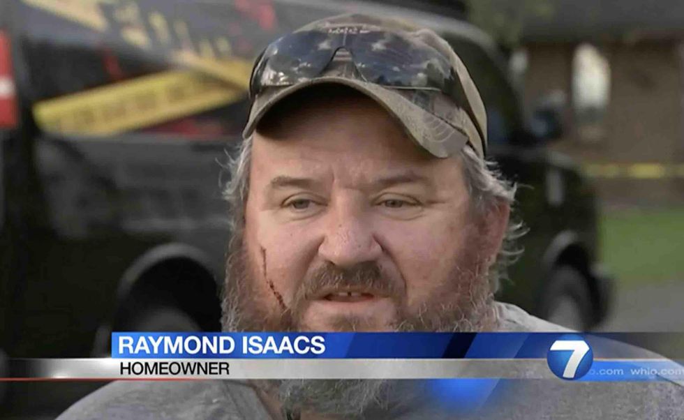 The station added that homeowner Raymond Issacs was fighting with the intruder — and Isaacs told WHIO the intruder said something off the wall to him during their altercation.