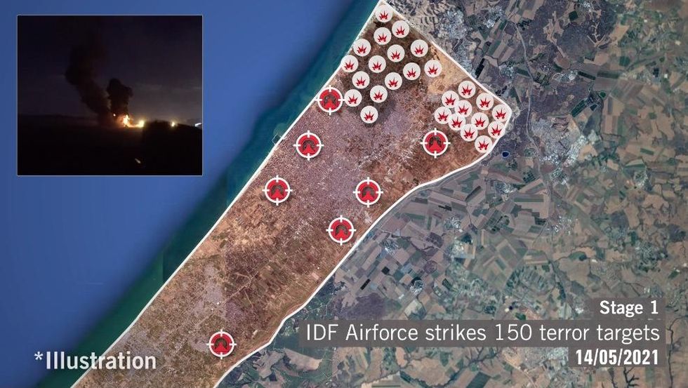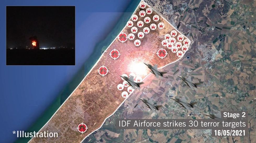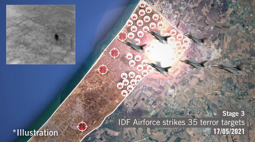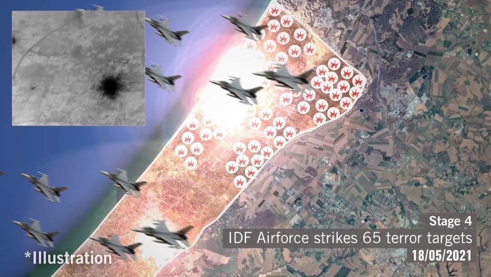 The IDF then showed locations of Metro access points and illustrated stages of airstrikes on the system.