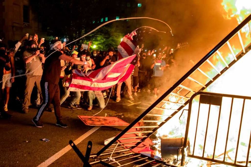 One of these tweets read, "Good morning, especially to the 54% of Americans that believe burning down a police station is justified."
