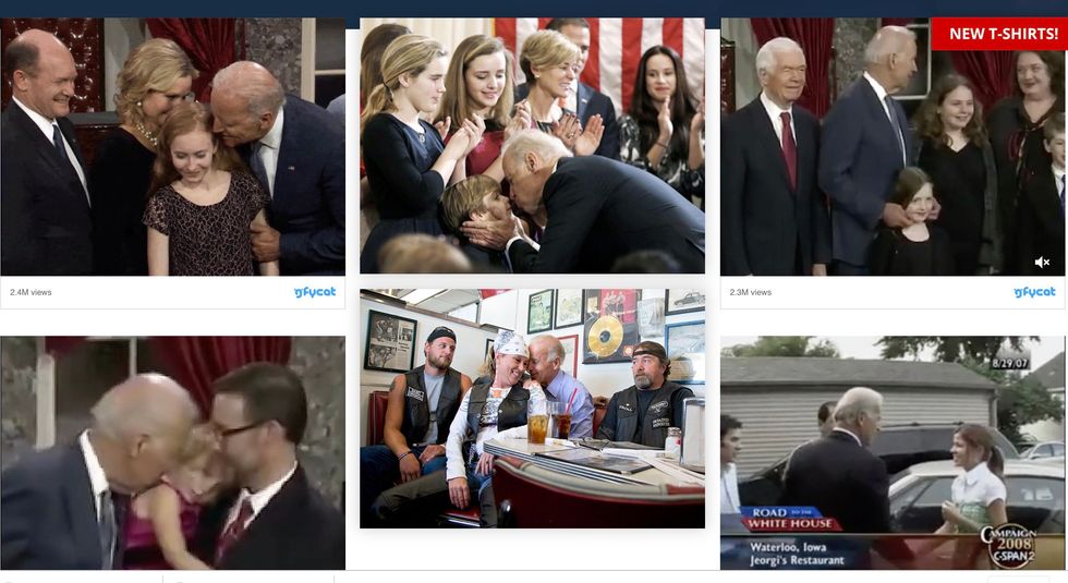 The realistic-looking parody website features images of Biden touching women and children, a common criticism of the former vice president.