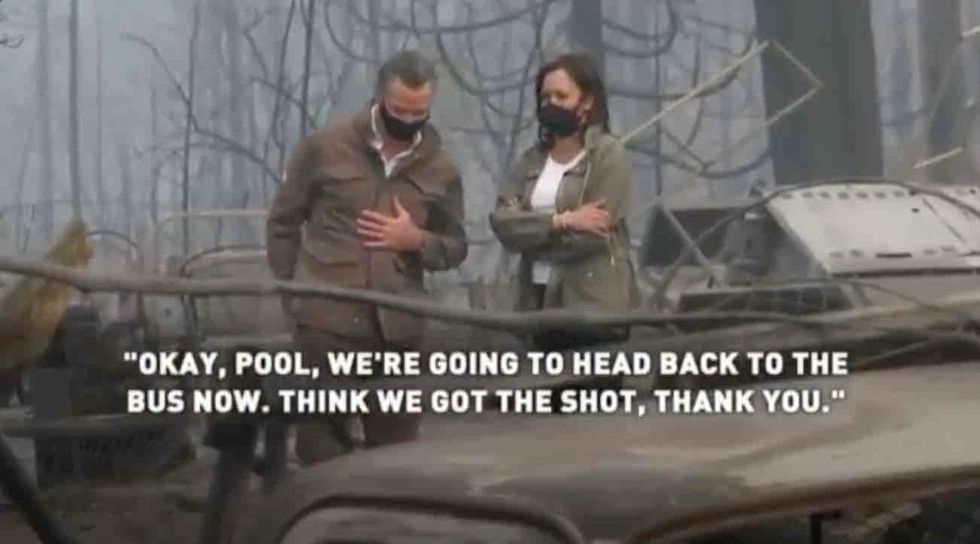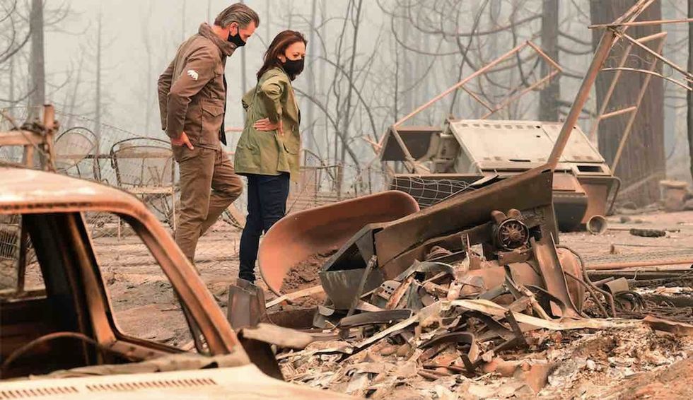 As you might guess, Harris and Newsom couldn't help placing blame for the fire on climate change.
