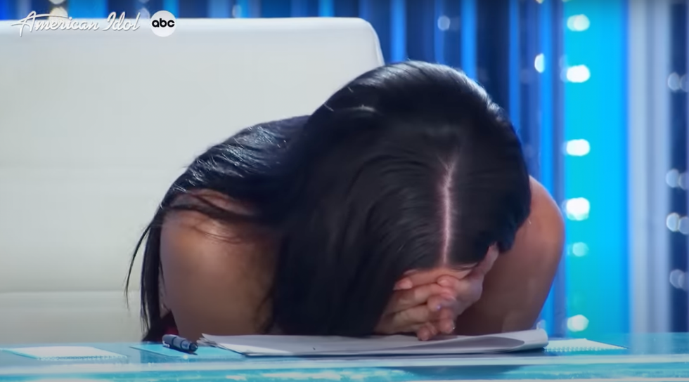 All the judges got visibly emotional over Louis' words, but Perry was most demonstrative, at first putting her head in her hands and weeping.