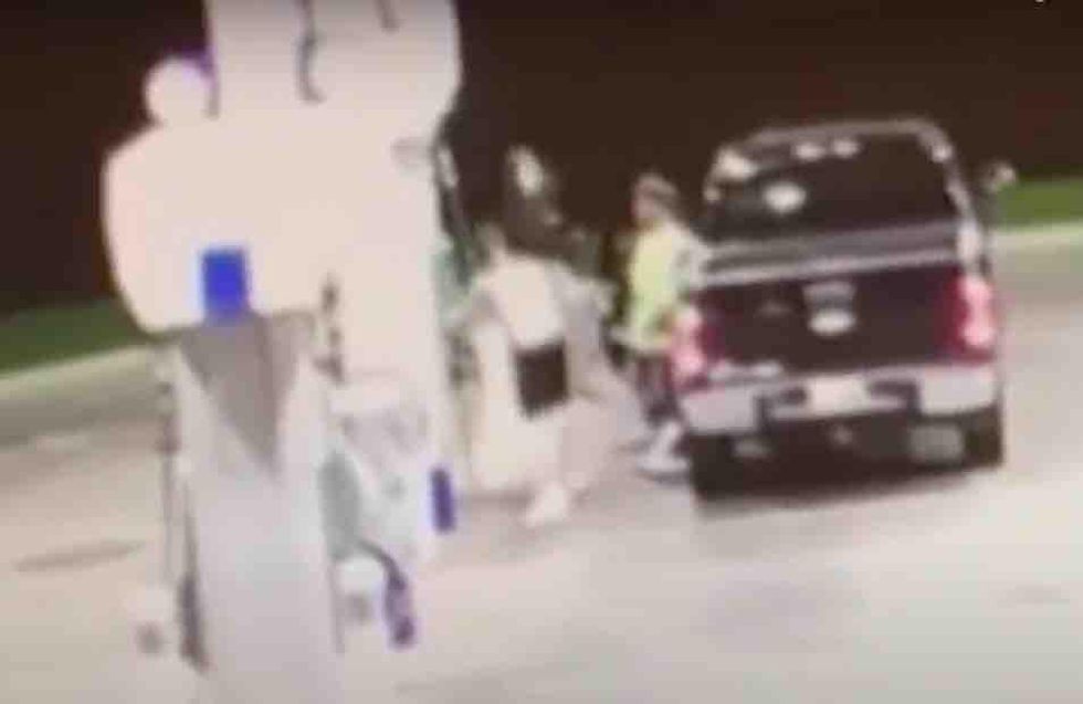 But almost as unsettling is the fact that the culprit did it all in front of a bystander who did not intervene while apparently pumping gas just feet away.